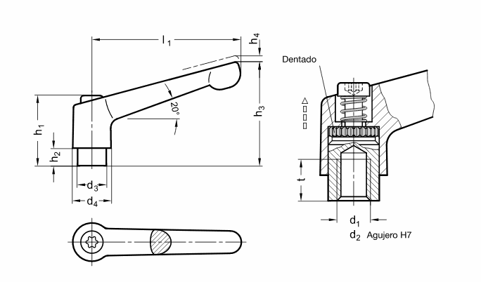 GN 300 MANIJA AJUSTABLE DE ZINC FUNDIDO A PRESIÓN RIFICIO LISO ACABADO SW NEGRO.
